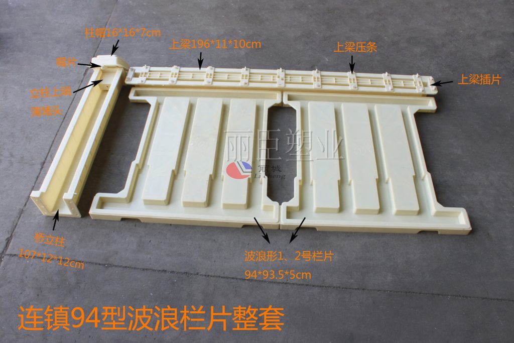連鎮鐵路柵欄模具欄片在澆筑過程中采用ABS塑料為主要注塑原料,ABS塑料原料質地較硬,在對水泥制品模具澆筑時不易發生變形等情況,也能減少因運輸問題而照成的模具破順變形等情況,澆筑成型后的水泥制品柵欄在外觀上呈現波浪形,更能符合符合江南水鄉風格。