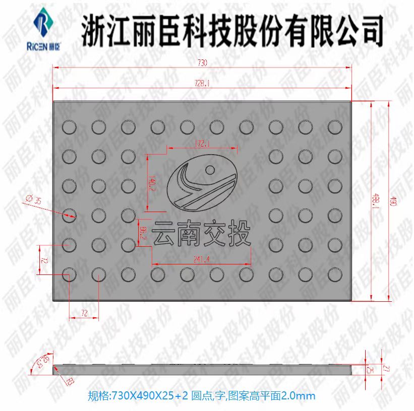 RPC云南交投塑料蓋板模具,圖案為圓點帶標志logo,設有云南交投字樣。